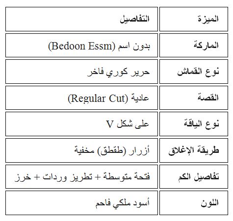 • قصة عصرية: تأتي العباية بـ قصة عادية (Regular Fit) تمنحكِ مظهراً متناسقاً وحشمة كاملة.